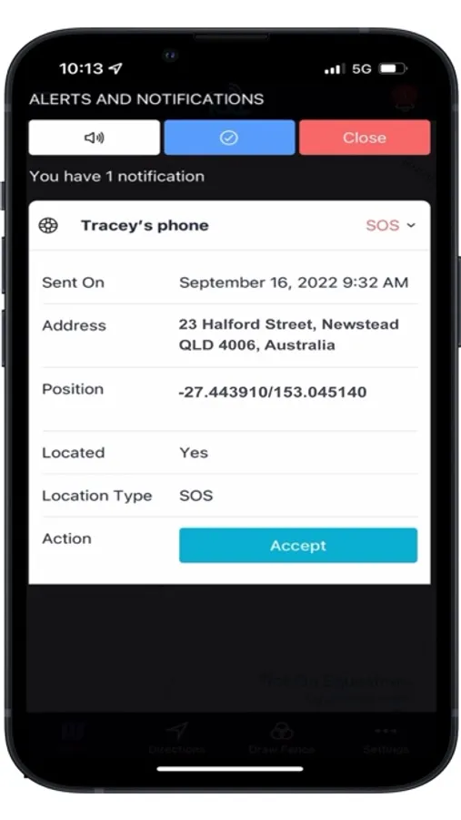 • Receive SOS alerts with a map link via SMS or email when they are in need of assistance and
