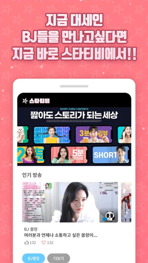 * 스타티비 For 팬더 티비에서 언제 어디서나 방송을 즐겨보세요! 매력이 검증된 BJ들만 모아 모아
