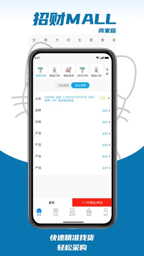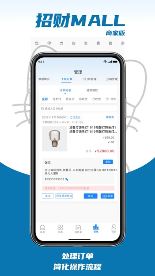 招财MALL店掌柜可以帮助商家随时随地轻松管理自己的生意,随时采购进货,处理订单,管理网点。
