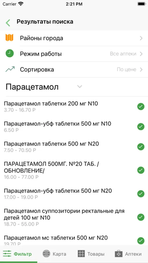 - поиск лекарства или набора лекарств в Вашем городе и районе,