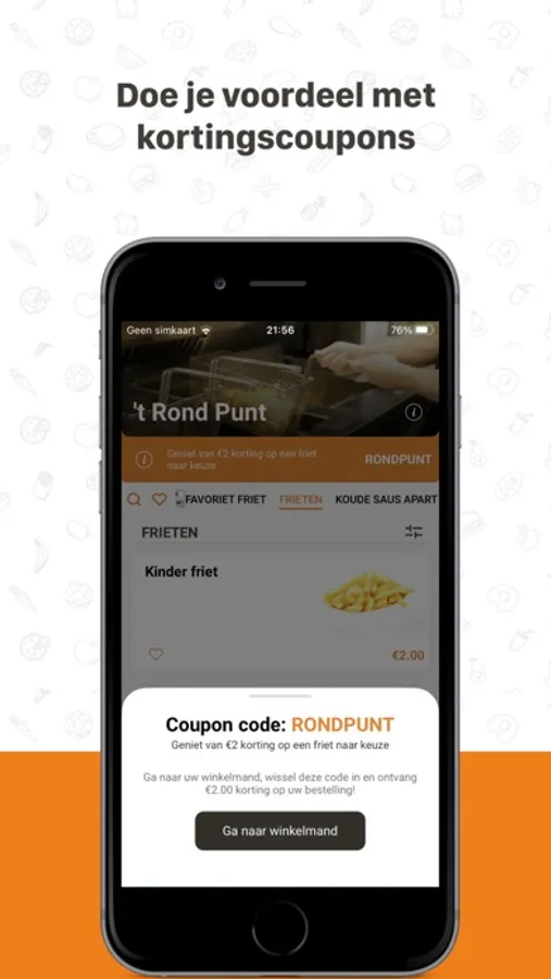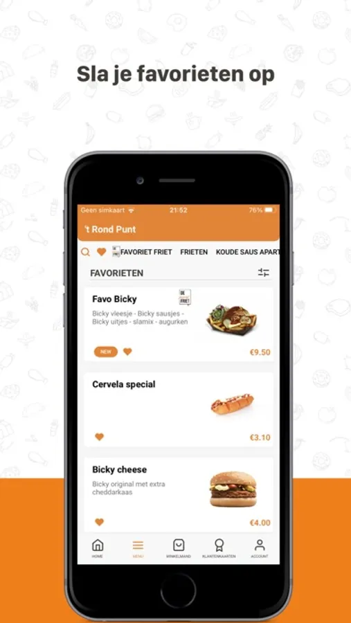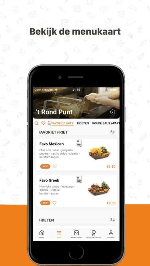 Bestel in een handomdraai een lekker pak friet, smakelijke burger, broodje of salade met de Frituur ’t Rond punt app.