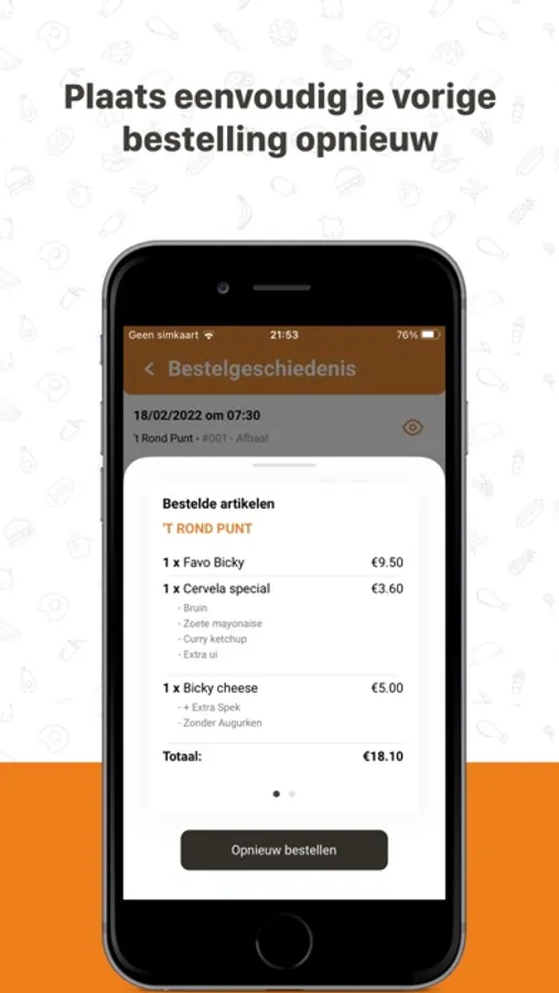 Via de favorieten functie of je bestelgeschiedenis ben je slechts enkele vingerdrukken verwijderd van een nieuwe bestelling. Echt handig!
