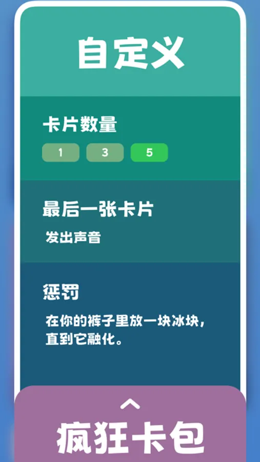 5. 每位玩家有五张卡片,卡片用完的玩家需要接受终极惩罚。