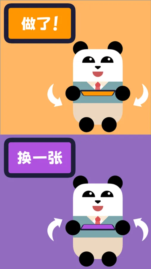 3. 如果做出卡片上的内容,该卡片失效,需将手机前倾,切换到下一张卡片继续。