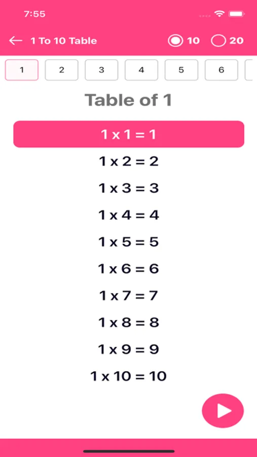 This is Maths timetable learning app with audio support. Its easy to use All tables multiples will be displayed and app will speak all the multiples one by one by highlighting the row getting spoken which makes learning really easy.