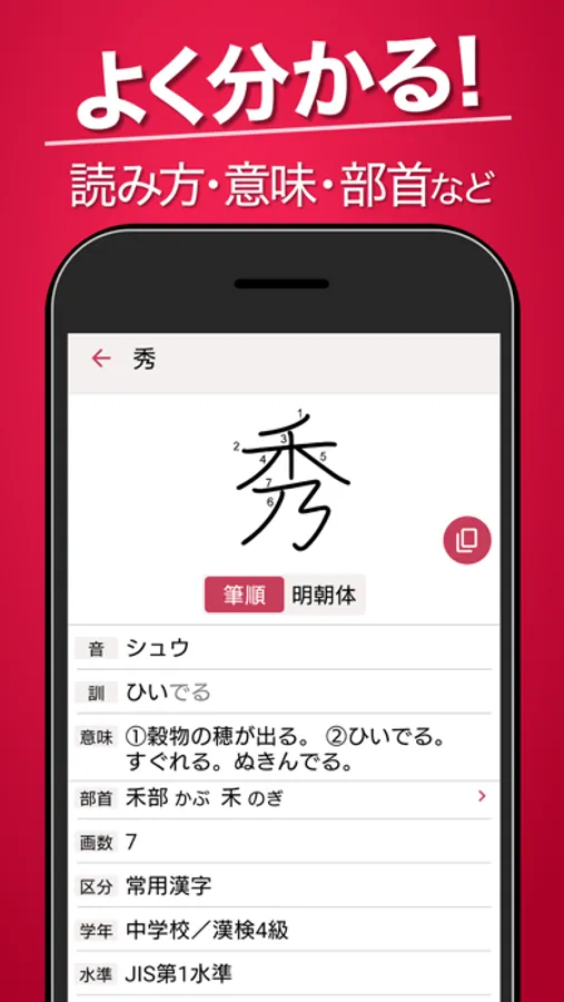 使いやすく・分かりやすい無料の漢字辞書アプリ「漢字検索 + 手書きで検索できる漢字辞典」をぜひご利用ください!