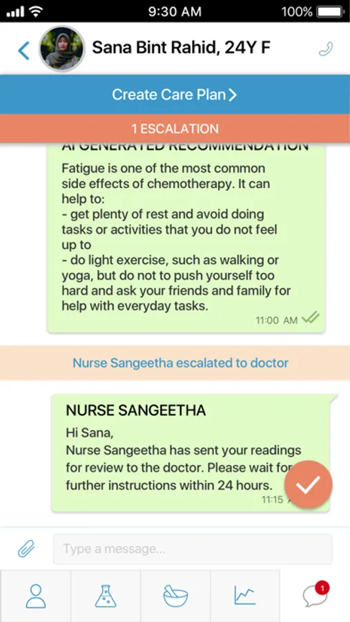 Reya Oncology Remote Care helps nurses and doctors manage their patient's medical oncology therapies remotely. Eligible patients are onboarded by a nurse on the smartphone app. Patients use the Patient App to add vitals and symptoms. Nurses are immediately alerted of severity of symptoms, allowing quick followup with patients. Doctors generate digital care plan for the patient remotely. The system enables care continuity and prompt feedback loops between the patient and their care team. The app also helps in Task Segregation of clinical & non-clinical requests and redirection to appropriate careteam member. Overall, this leads to better patient experience, and improved quality of care.