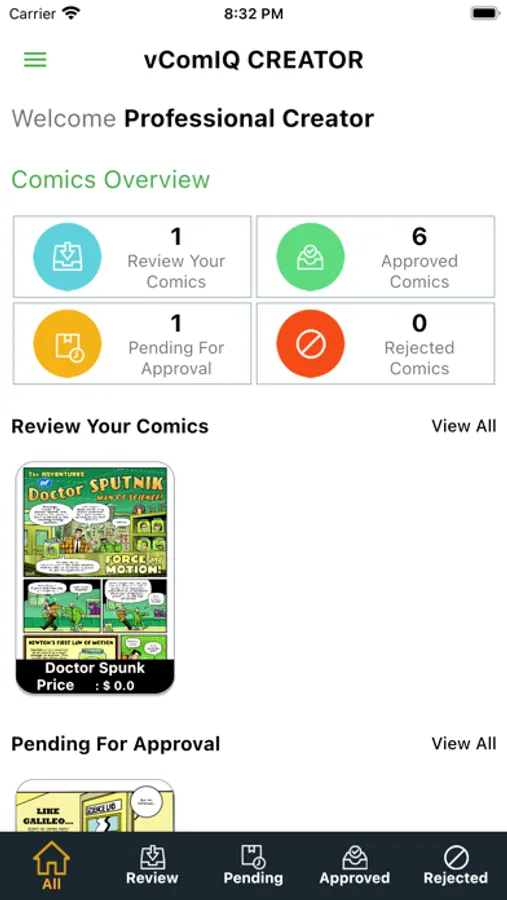 2. Log in as a creator in the app and check your uploaded comic