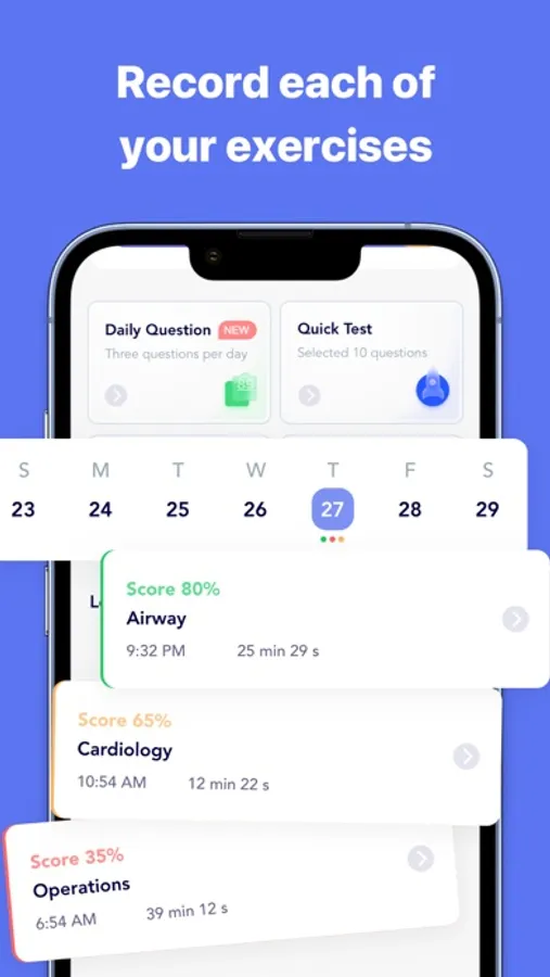 - 3 carefully recommended questions per day to help you spend the least amount of time and start your day with a new test.
