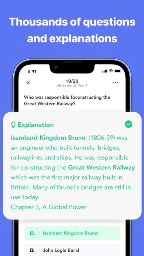 Life in the uk Test 2023 is the number one app that can help you pass the exam and is the choice of thousands of users. Our only goal is to help you pass the exam efficiently and easily, even if it's your first time taking it!