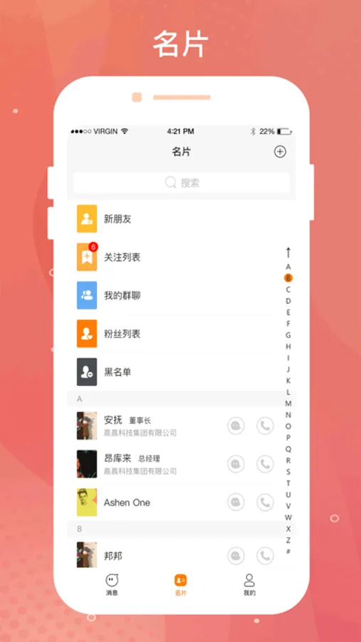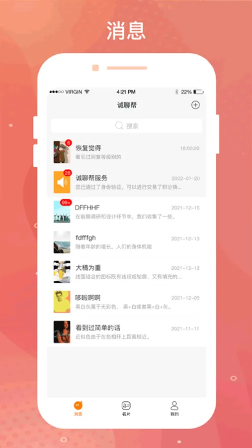 诚聊帮通讯系统,用户可通过诚聊帮即时通讯工具扩张人脉、实时交流、创建群聊、语音通话、视频通话,方便大家的线上沟通交流,对办公效率大大提高有所帮助。