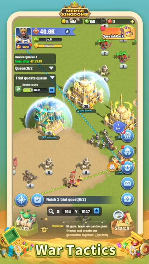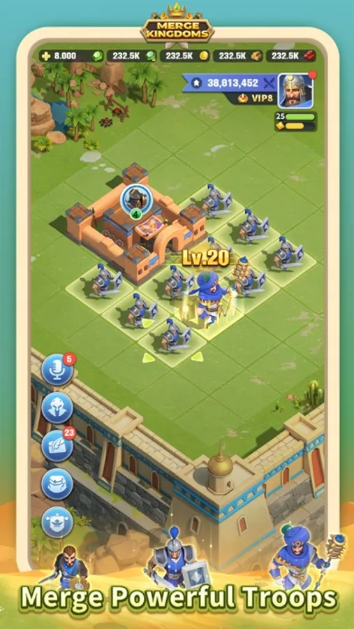Do you have what it takes to become the strongest warlord? Merge troops & buildings to upgrade them easily!