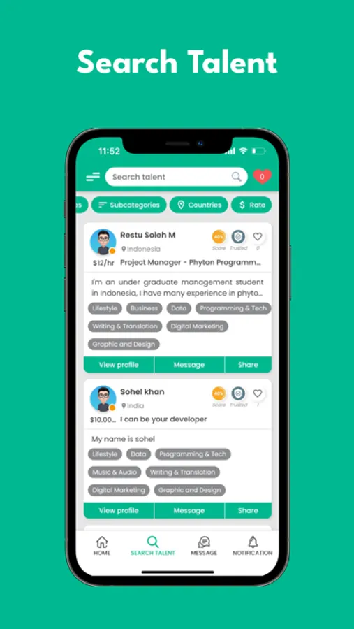 With Frogig, you can easily find the perfect talent to fit your needs. We provide a comprehensive platform to search for potential talent from a wide variety of sources.