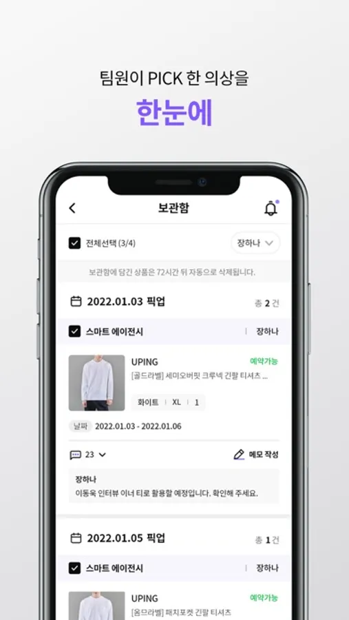 SMART STYLIST를 활용하여 픽업, 반납 일정, 팀 내 보유 의상, 미납 의상 정보 등을 한눈에 확인할 수 있으며,