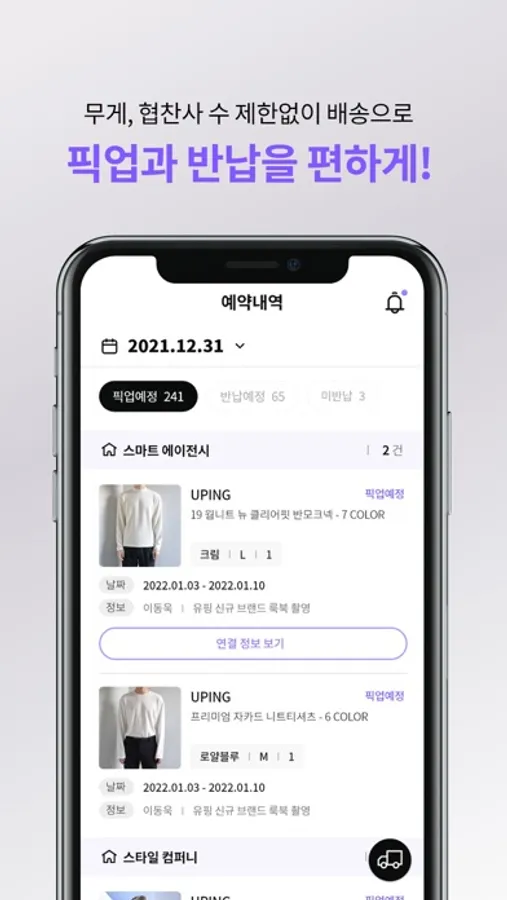스타일리스트 전문 배송을 통해 단 1번의 주문으로 여러 협찬사의 의상을 무게, 수량 상관없이 사무실까지 받아보는 편리한 경험 이제 시작해 볼까요?