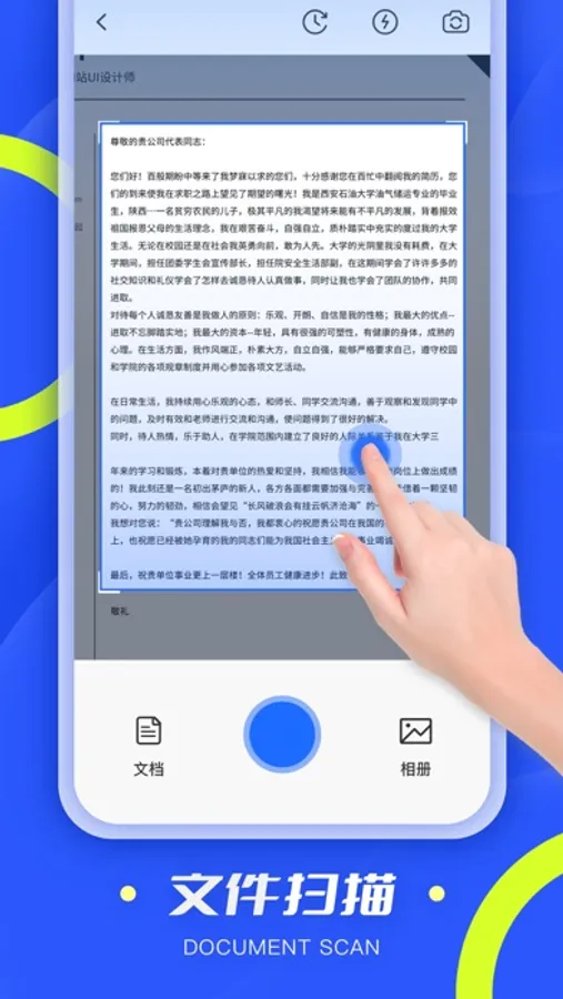 「文件扫描」利用先进的图像识别技术(OCR),图片转文字的文字识别功能。