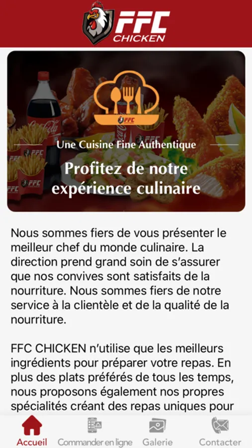 FFC Chicken In is an app to help our customer to provide an information about our restaurant and food also help to reach to our restaurant by map.