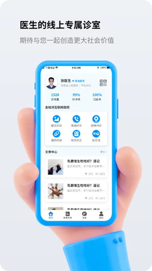 金柏河APP是为医生开设线上个人专属诊室、进行在线问诊工作、诊后健康管理的平台。全面提高医生工作效率,提升医生价值及个人品牌影响力,开启线上执业新方式,为更多患者提供诊疗服务。