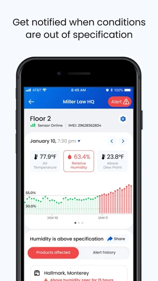 Receive real-time alerts based on actual project data detected by our sensors when compared to product manufacturers’ specifications.