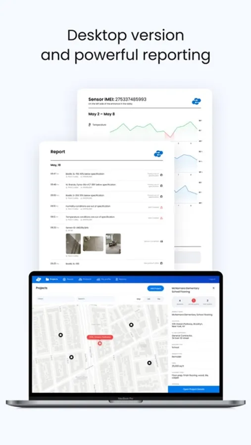 Floorcloud™ is THE only real-time, quality management, SaaS platform custom built for the flooring industry. We utilize a proprietary product specification database, climate sensors and cellular IoT networks to monitor jobsites in real-time to help improve outcomes for all project stakeholders. Our technology helps identify out of specification jobsite conditions as they occur, in real-time, and alert key individuals to take corrective action. We also make it simple for valuable information, such as notes, photos, data graphs to be easily archived and retrieved for future analysis.