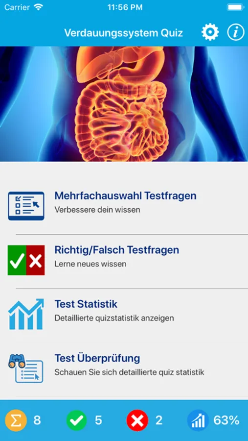 Testen und verbessern sie ihre wissen beantwortung der fragen und erfahren sie neue erkenntnisse über Verdauungssystem unsere app.
