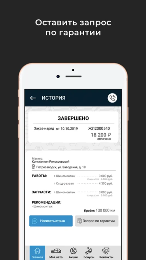 В приложении можно записаться на сервис или техническое обслуживание.