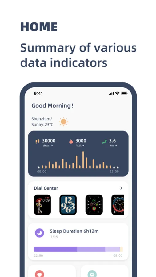 HappyCat Fit app is connected with the watch, which can obtain the watch's heart rate, sleep, exercise and other health data, receive mobile phone message notifications in real time, customize the dial background, view weather forecast information and so on.