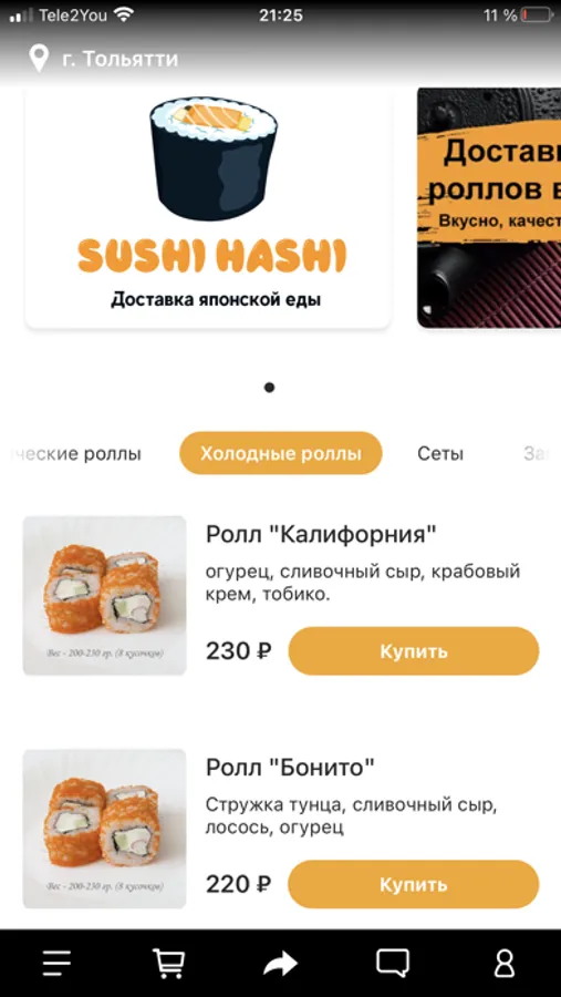 Доставка роллов и суши в Тольятти. Готовим только из качественных и свежих продуктов. Радуем своих клиентов с 2014 года. Наш девиз "Вкусно, качественно, недорого!"