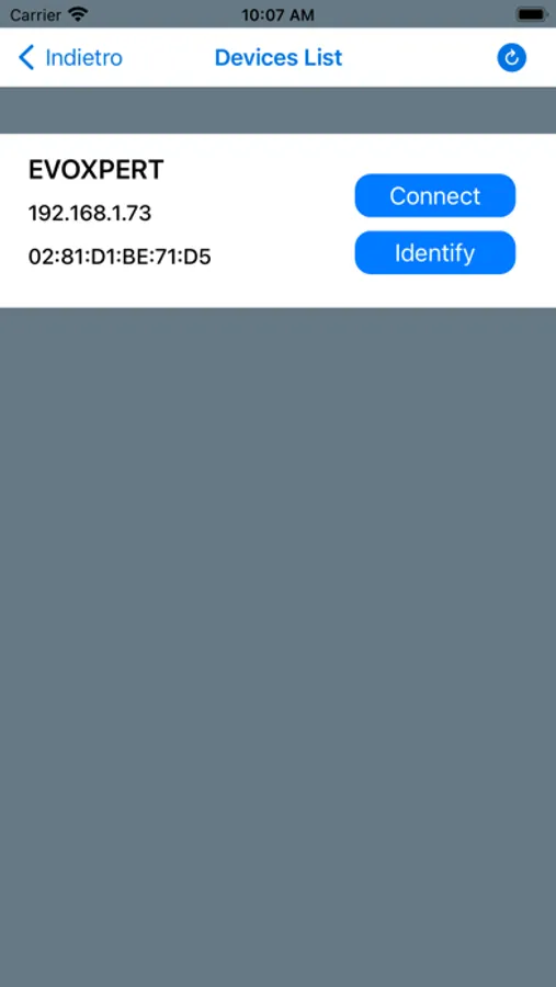In the same APP, after being pressed Connect, you will get com with EvoXpert device.