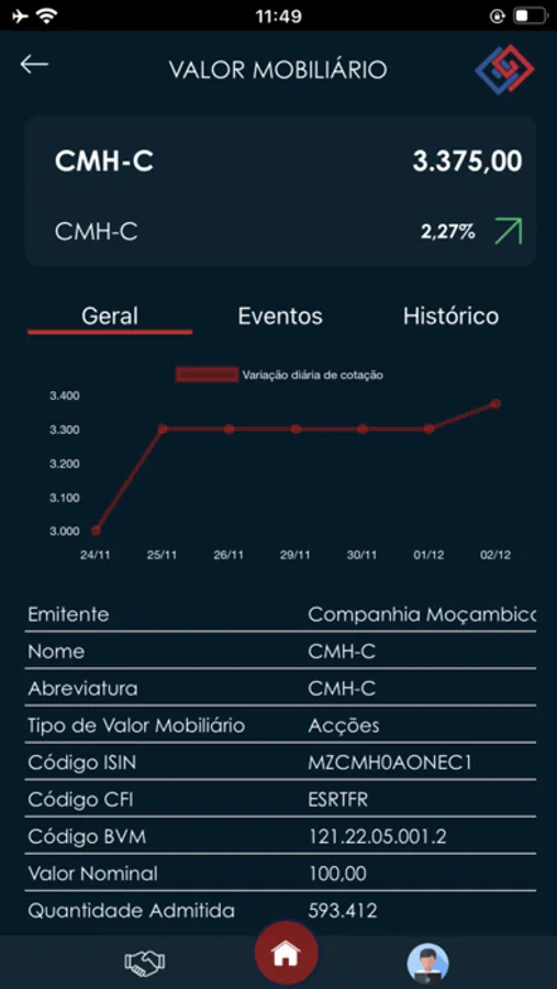 i. Ecrã pormenorizado de cada valor mobiliário, onde se encontra: