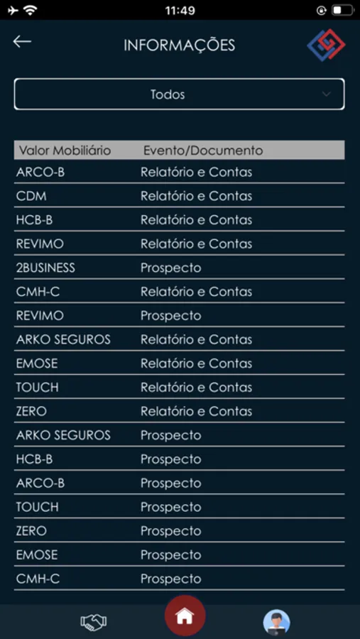 a. Listagem geral de todo o tipo de eventos relacionados a qualquer valor mobiliário;