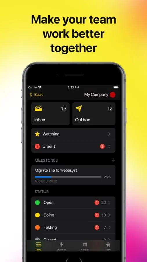 Webasyst Teamwork helps you to unite your team and work remotely (WFH). In Webasyst Teamwork task tracker, each employee feels like a part of a single cohesive team. The actual "feeling of fellowship" online. You can host the entire backend in Webasyst Cloud or your own server. The server-side cloud app is available with open source code.