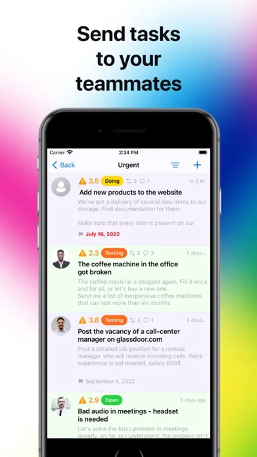 - Prioritize tasks: low, normal, high, urgent, and ON FIRE!