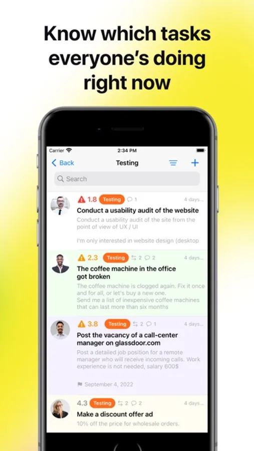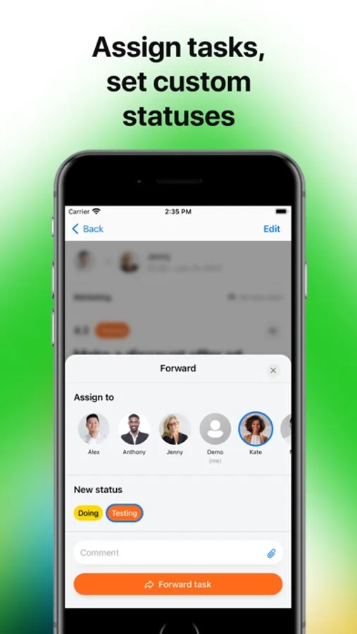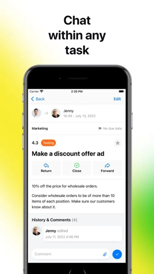 - Task commenting & discussions (chat within any task),