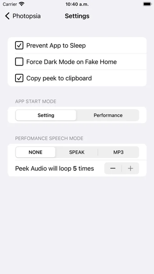When the Spectator opens his eyes, the image selected in the settings will be shown as forced, this can be repeated with one or more images from the same album and even without leaving the performance, choose another album to perform the same or another effect.