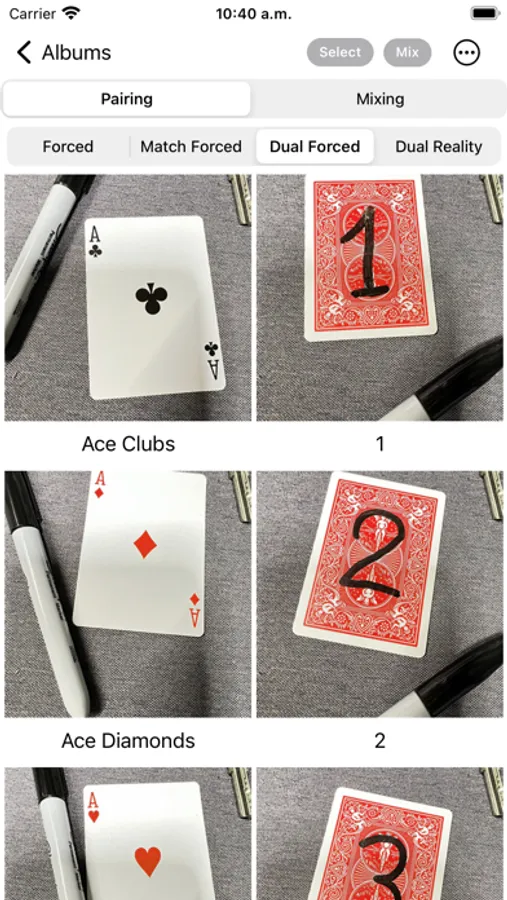 With this feature you will be able to force one or several items (image). In the case of not adding any image as force, you will only be able to do the peek. ( guessing the last image the spectator saw by closing their eyes to focus on the details of that image)
