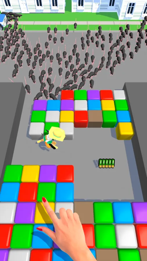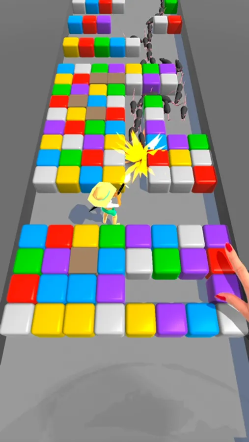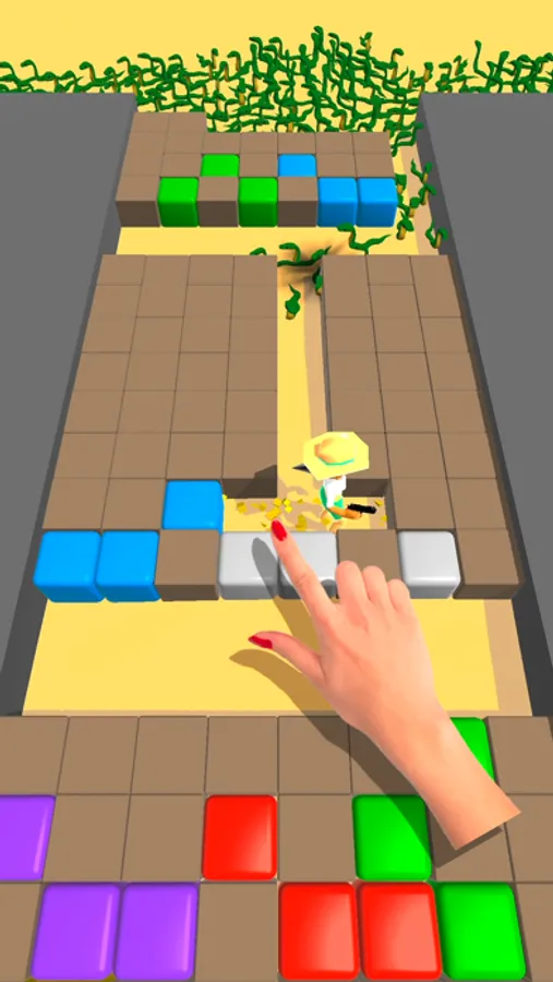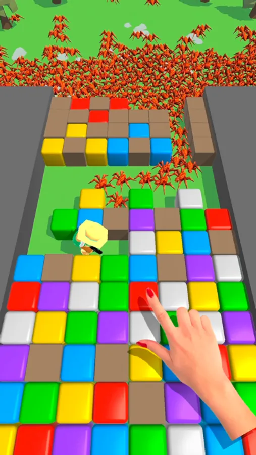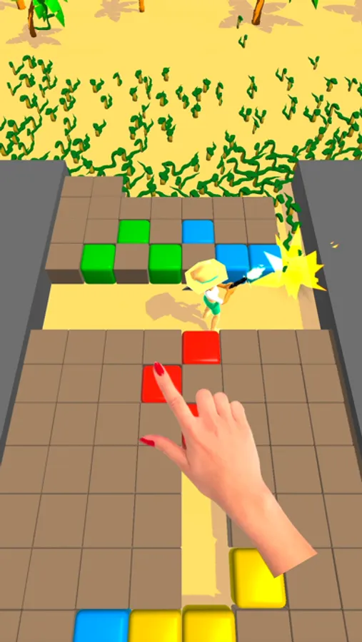 Swap two adjacent blocks to make a line with 3 blocks of the same color. When you destroy the blocks it creates a path for your player to escape the critters.