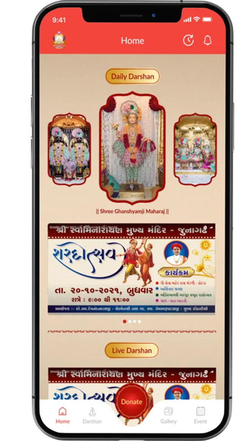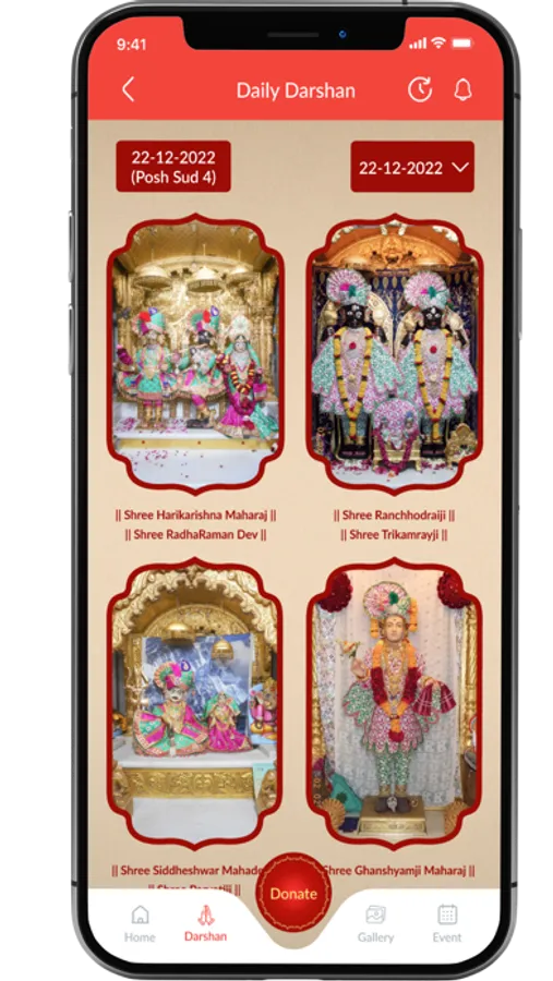 "This Application shows Daily Darshan on selecting specific date. So all devotees can see LIVE dashan from Junagadh Temple."