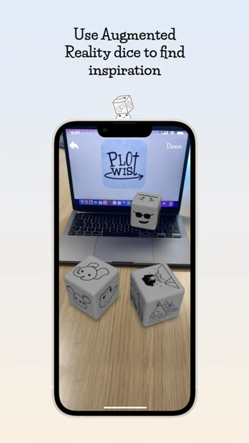 • Guided Storytelling mode, you will be helped in your writing process by input phrases. If you aren't able to find inspiration, then you can choose between 6 categories of 3D dice to roll in Augmented Reality.