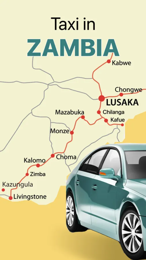 Book a car directly in Zambia: enter your destination address to transportation. Track your cab on its way to your destination.