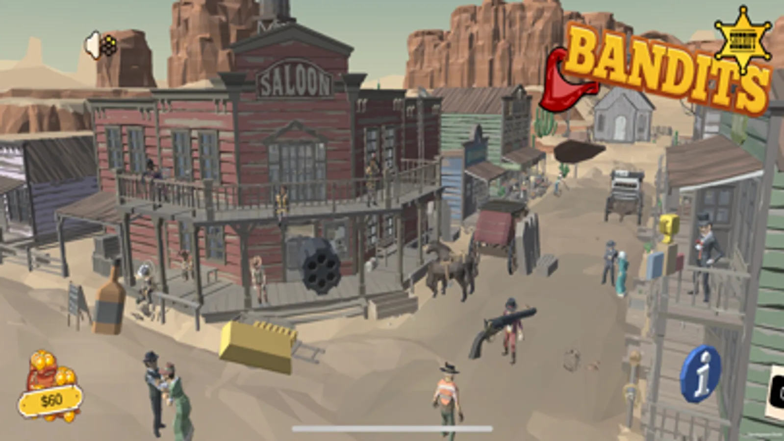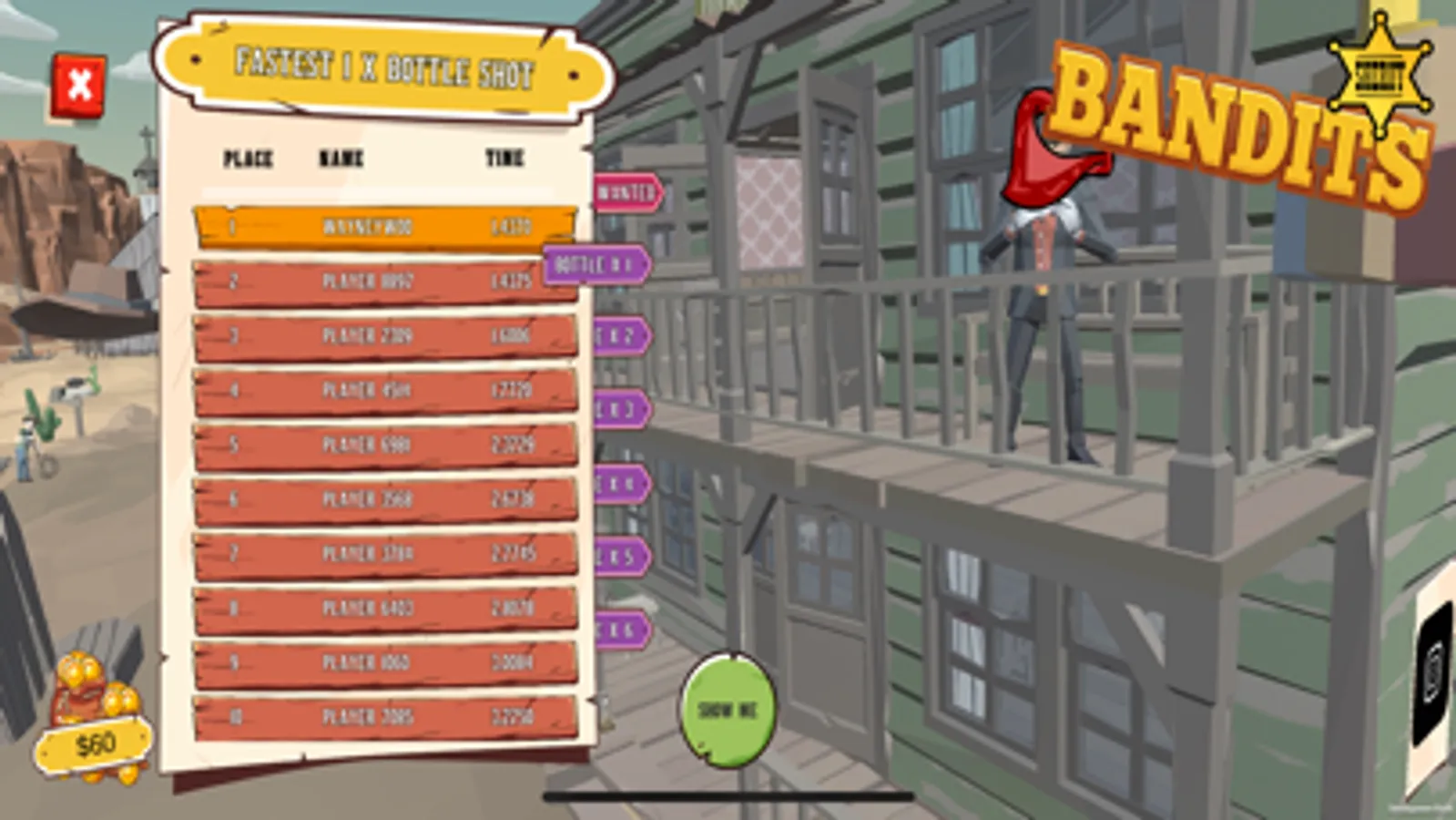 Collect those bounties and become the richest fastest gun in the West. Compete against your friends and see who really is the fastest, hone your reaction times with bottle shooting and progress up the ranks to become the fastest Bandit in the world.