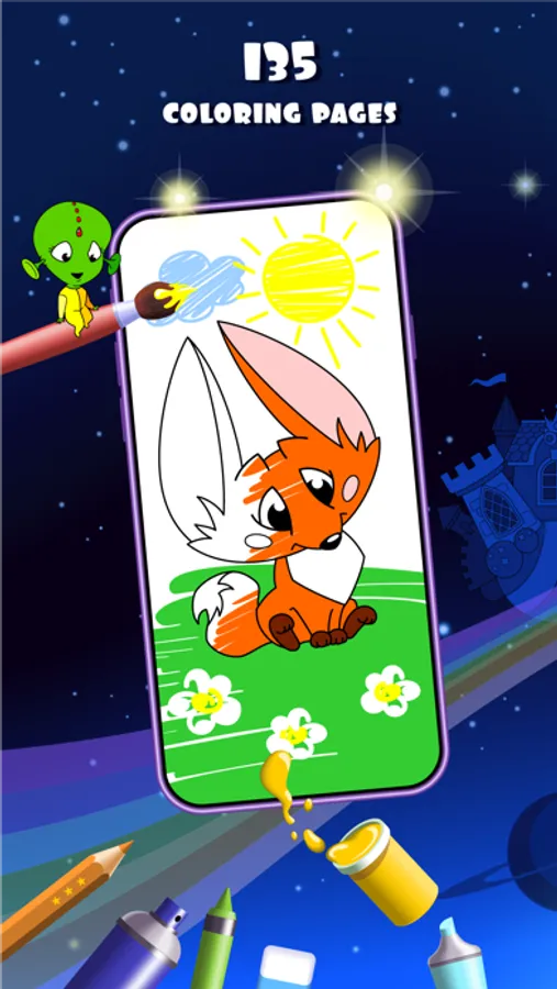 The game interface is designed specifically for little kids. All elements have large details so that kids can play on their own. In the process of coloring it is impossible to go beyond the contours of the details, this makes the game as convenient as possible even for the little ones.