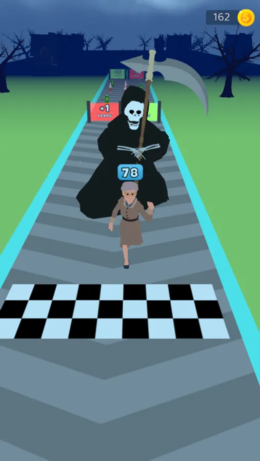 Death is near! Stay young and do not let the grim reaper catch you. Run as fast as you can and do not get old or else your time will come. Use slippers to hit the reaper to slow him down. If you turn into a granny and get very old the reaper will take your soul. So you better run.