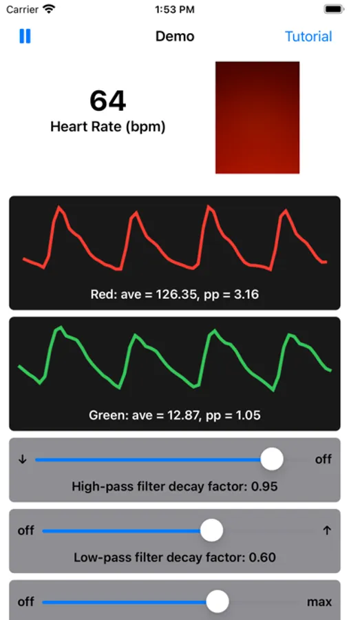 The concepts of Heart Rate measurement using reflective photoplethysmography (PPG) along with some of the basic digital signal processing (DSP) techniques are demonstrated. PPG waveforms are displayed and your heart rate is calculated. Signal processing controls are provided for experimenting with different DSP techniques on heart rate measurement.