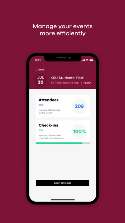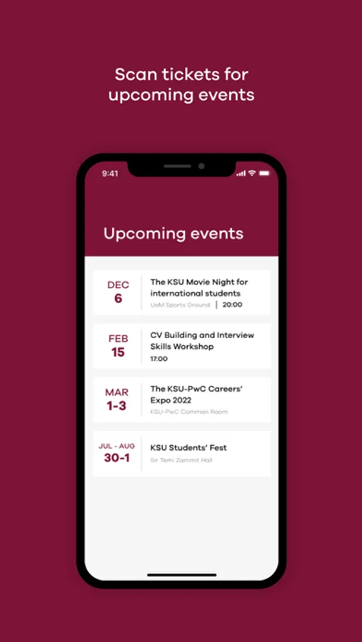 The myKSU Admin app is a simple and smart way of controlling events and the tickets sold. Through this app, one can easily track ticket sales and scan tickets instantly, anytime, anywhere.