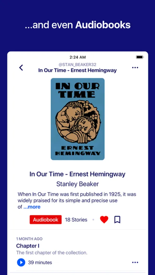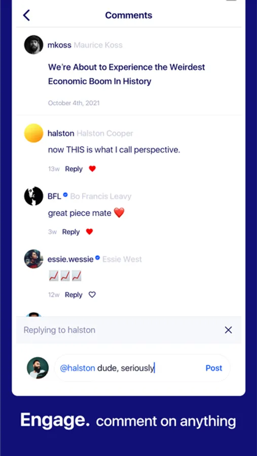 Share your opinion - you can comment on almost anything. From photos, videos, songs, podcast episodes, audiobook chapters, articles, poems and more. You can like anything and even save content for later. The more you engage, the better the platform gets.