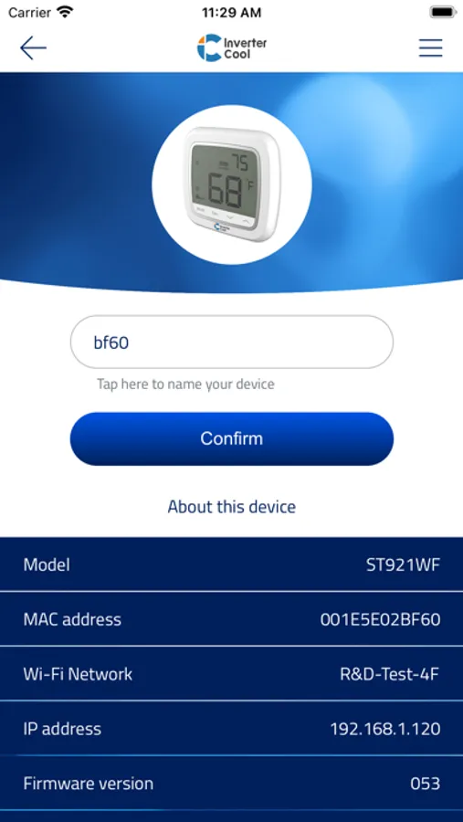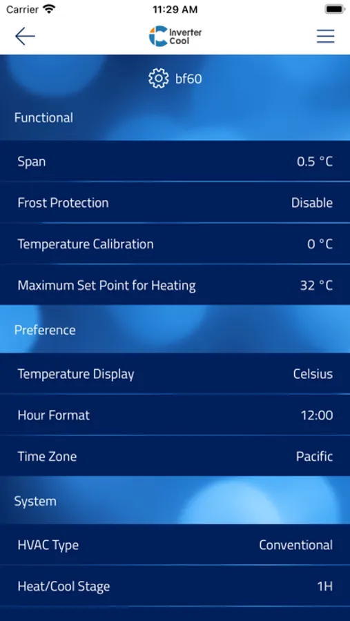 The IController app provides a clean interface with intuitive navigation to allow users to monitor and control the HVAC systems from any iOS mobile device. The App provides a simple and efficient view of the run-time status of multiple InverterCool Smart Thermostats installed on you home WIFI network. One touch allows you to drill-down into any thermostat to view the operational status of your HVAC equipment, control the set-point temperature, heating and cooling mode and fan state and schedules. A detailed settings menu allows users to access, and alter, many of the system parameters right from your mobile device. A convenient Bluetooth interface provides a fast and efficient means of connecting the thermostat to the local Wi-Fi network.