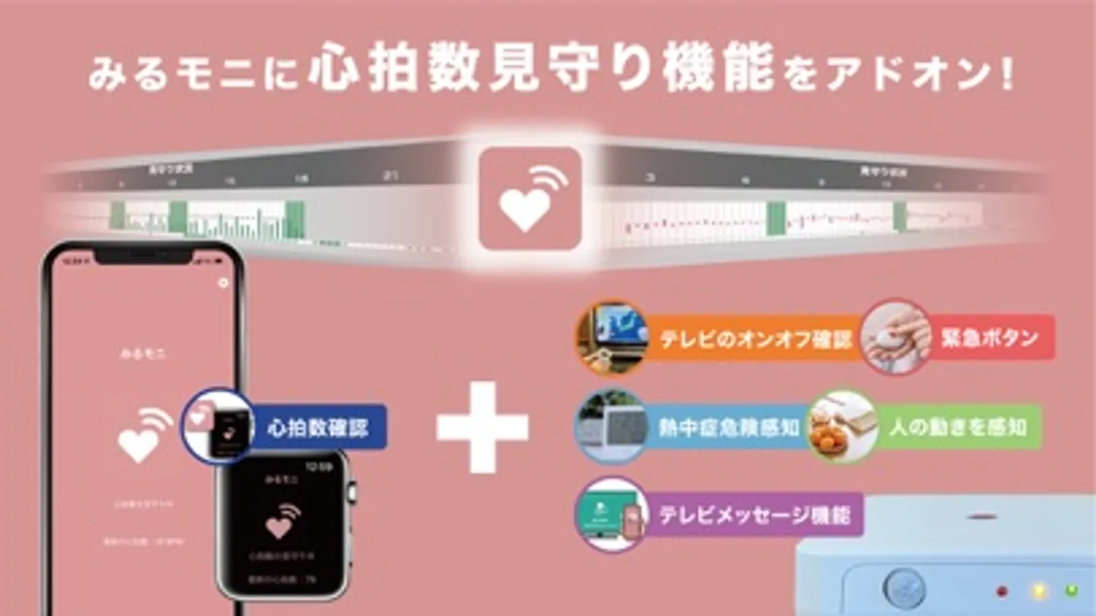 みるモニ心拍数 は Apple Watch および「ヘルスケア」アプリで管理されている心拍数データを弊社NMSの見守り機器「みるモニ」に統合するアプリです。お手持ちの iPhone および Apple Watch にインストールして、「みるモニ」のシリアル番号を入力することで、通常のテレビの利用状態や活動状況・室内環境状態に加えて、心拍数がグラフ表示されるようになります。