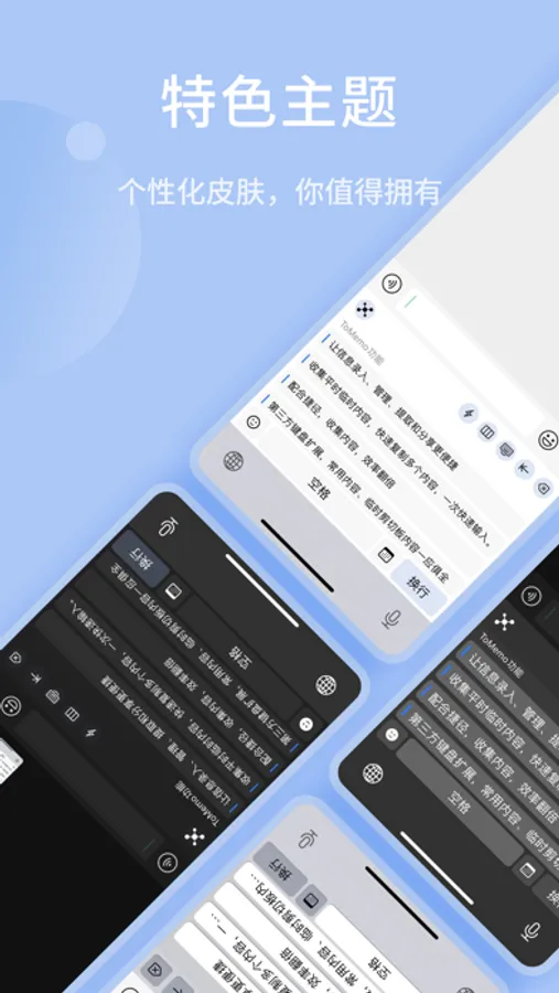 ·【个性设置】支持自定义键盘高度、多种键盘布局、自定义时长留存、输入后自动切回原输入法等多项偏好设置,输入习惯跟你走