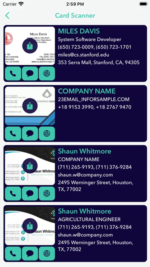 Content Sharing: You can easily share contacts or digital business cards with sales agents and other business-related people.